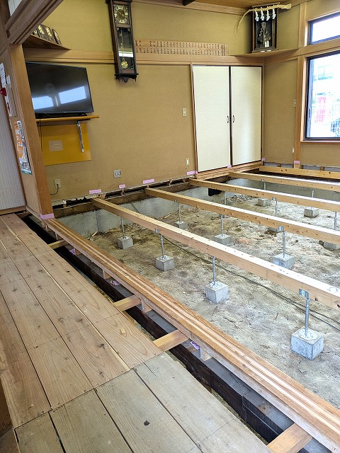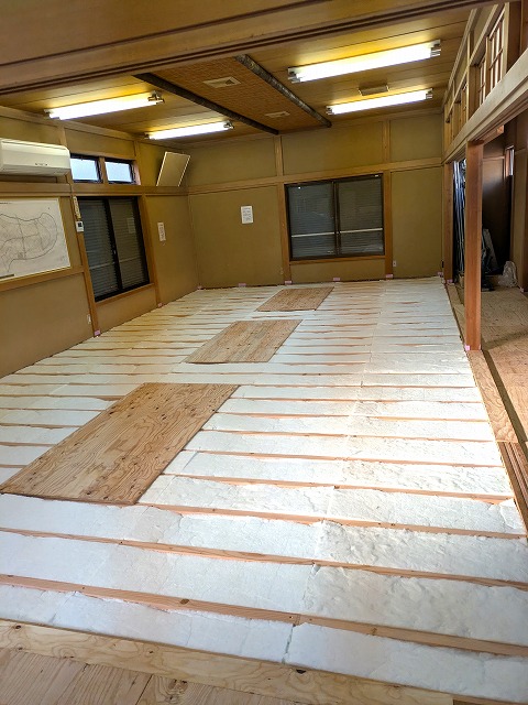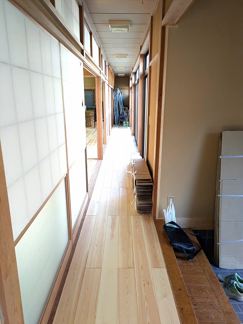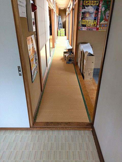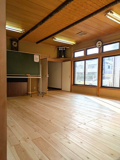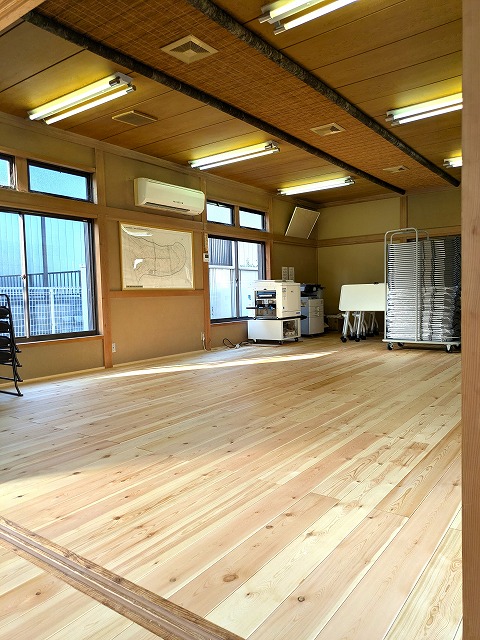 また、会館内は廊下も含めて畳敷きをやめ、床板を張りました。利便性向上と老朽化対策です。