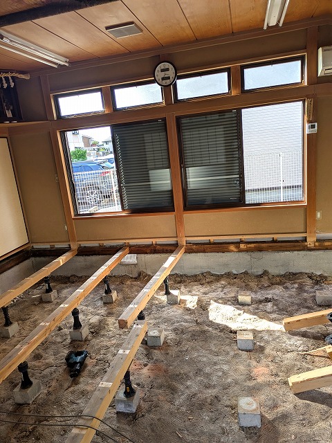 熊谷市内にある久下新田自治会館です。耐震補強工事と畳⇒床張り工事が主な工事でした。